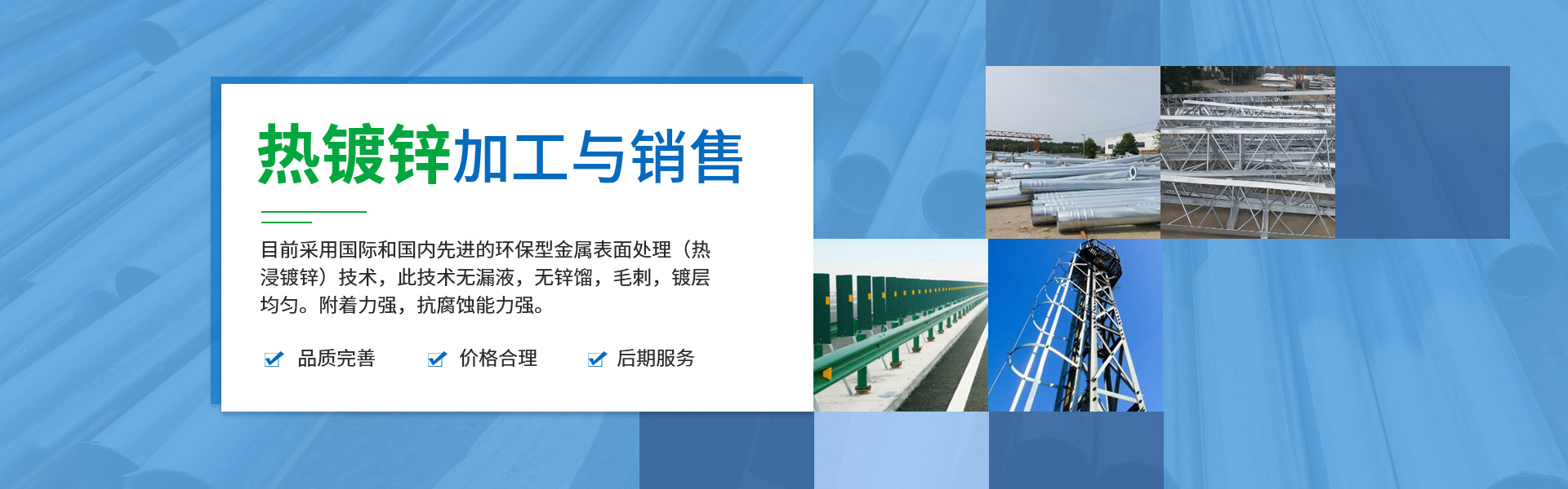 采用國際和國內先進的環保型金屬表麵處理(熱浸鍍鋅)技術,此技術無漏液,無鋅餾,毛刺,鍍層均勻。附著力強,抗腐蝕能力強,曾為我國電力,公路,高鐵,通訊,燈杆等大型金屬表麵防腐工程加工產品